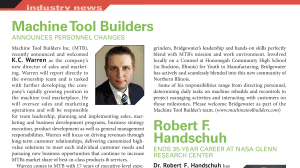 Markus Stolmar, president and CEO of United Grinding North America Inc., a subsidiary of the United Grinding Group, was recently elected to the Association for Manufacturing Technology (AMT) board of directors. AMT represents U.S.-based providers of manufacturing technology, speeding the pace of innovation, increasing global competitiveness and developing the industry’s advanced workforce of tomorrow.